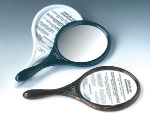 Reading chart on one side, flat mirror on the other. Colour: Brown